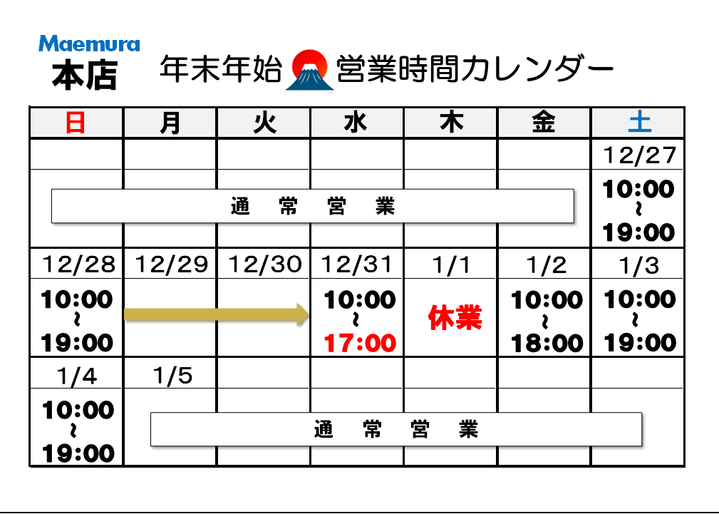 年末年始営業時間