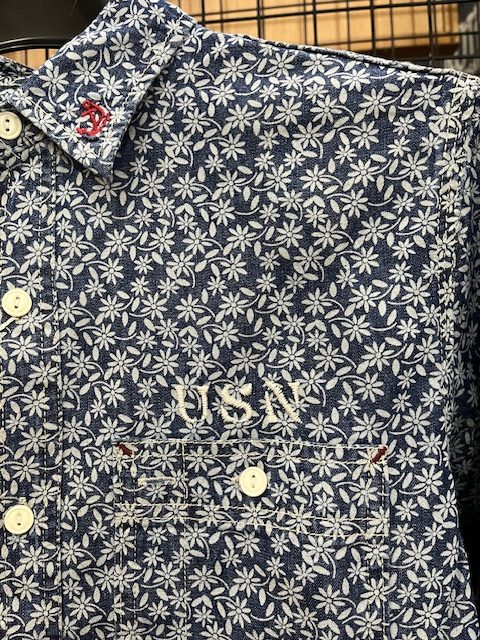 U.S.NAVYのワークシャツベースをベースにした小花柄のデニムシャツです。