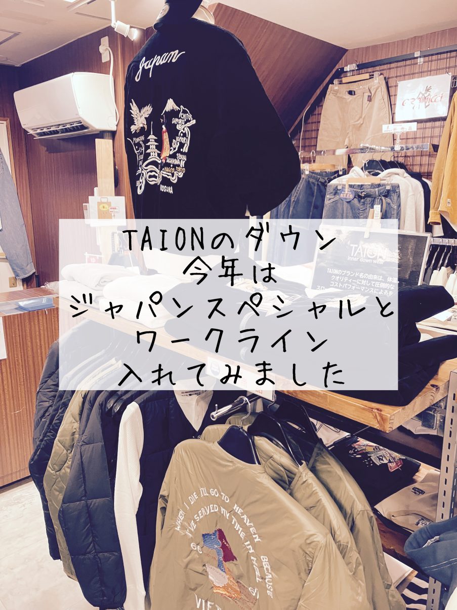 ということで今回はTAIONのダウンジャケットが入荷したのでご紹介します。今年はジャパンシリーズはワークラインを入れてみました。どうぞ、ご覧ください!!