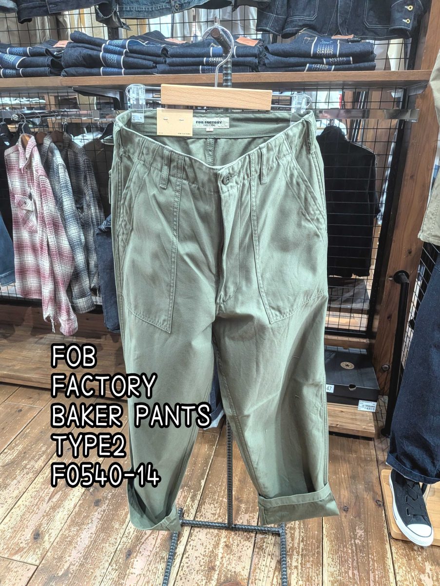 特にGジャンに合わせるパンツが欲しいという声が多くこの品番が人気です。FOBファクトリーのベーカーパンツは以前、細身のタイプが代表的だったのですが、現在はタイプ2(ルーズなシルエット)を展開中です。太すぎずな形が最高です。